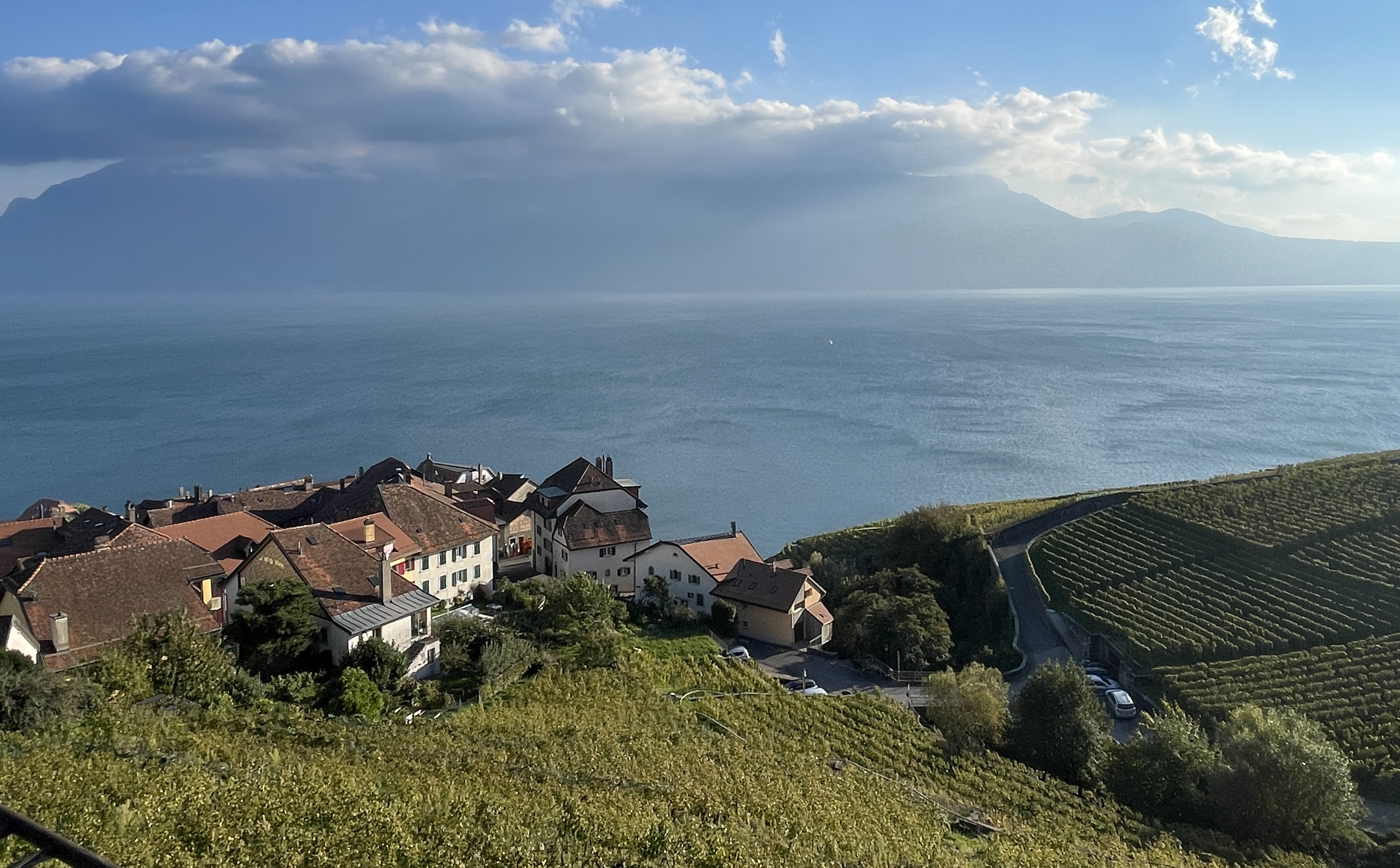 Blotti entre lac et montagne, le village de Rivaz est un véritable bijou du Lavaux. Situé sur la rive nord du Léman, entre Saint-Saphorin et Chexbres, il est le plus petit village de Suisse romande, mais il possède une identité forte et un héritage viticole exceptionnel. Ses origines remontent au Moyen Âge : des textes mentionnent Rivaz dès le XIᵉ siècle, à une époque où les moines cisterciens et bénédictins jouèrent un rôle déterminant dans l’aménagement des coteaux. Ils entreprirent la construction de terrasses soutenues par d’imposants murs en pierre sèche, organisant le paysage de façon méthodique afin d’exploiter au mieux les pentes abruptes, l’ensoleillement généreux et la proximité bienfaisante du lac.